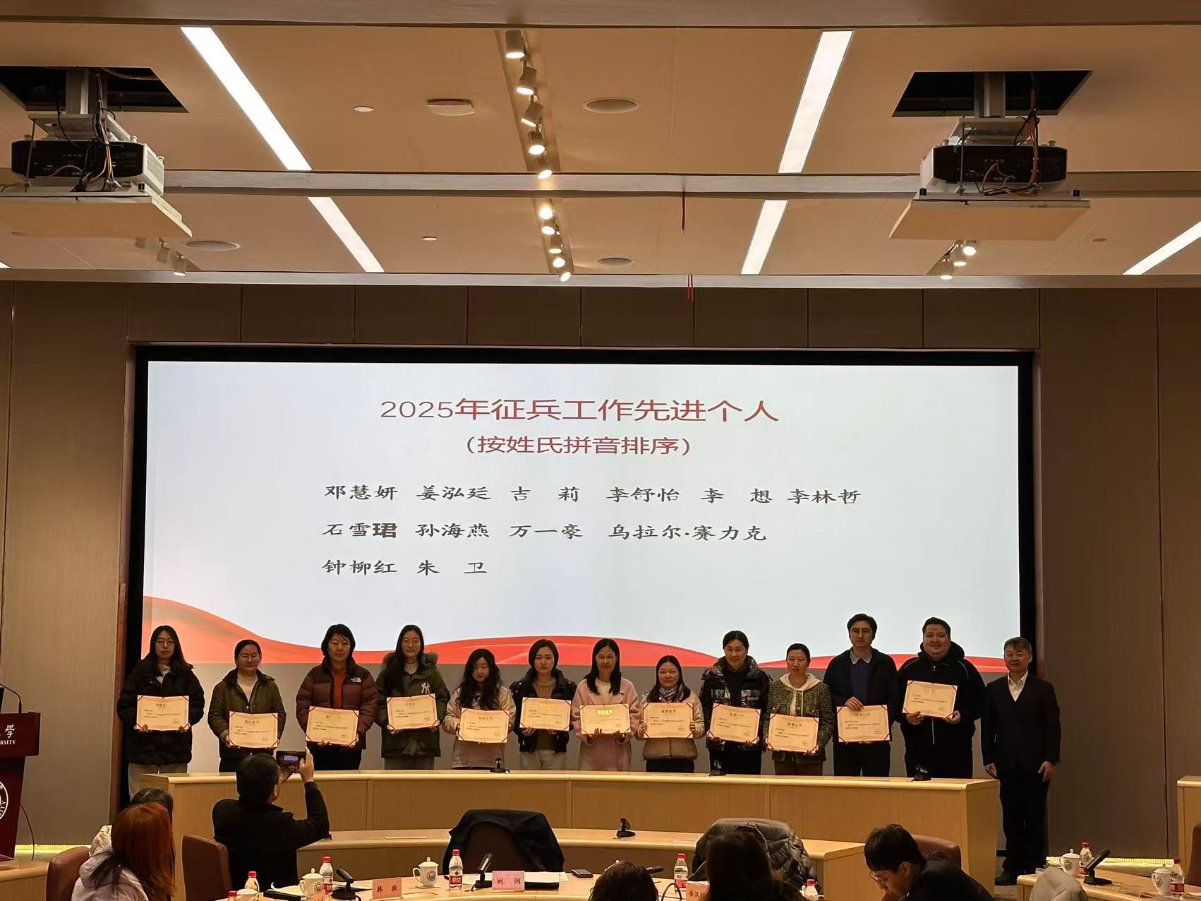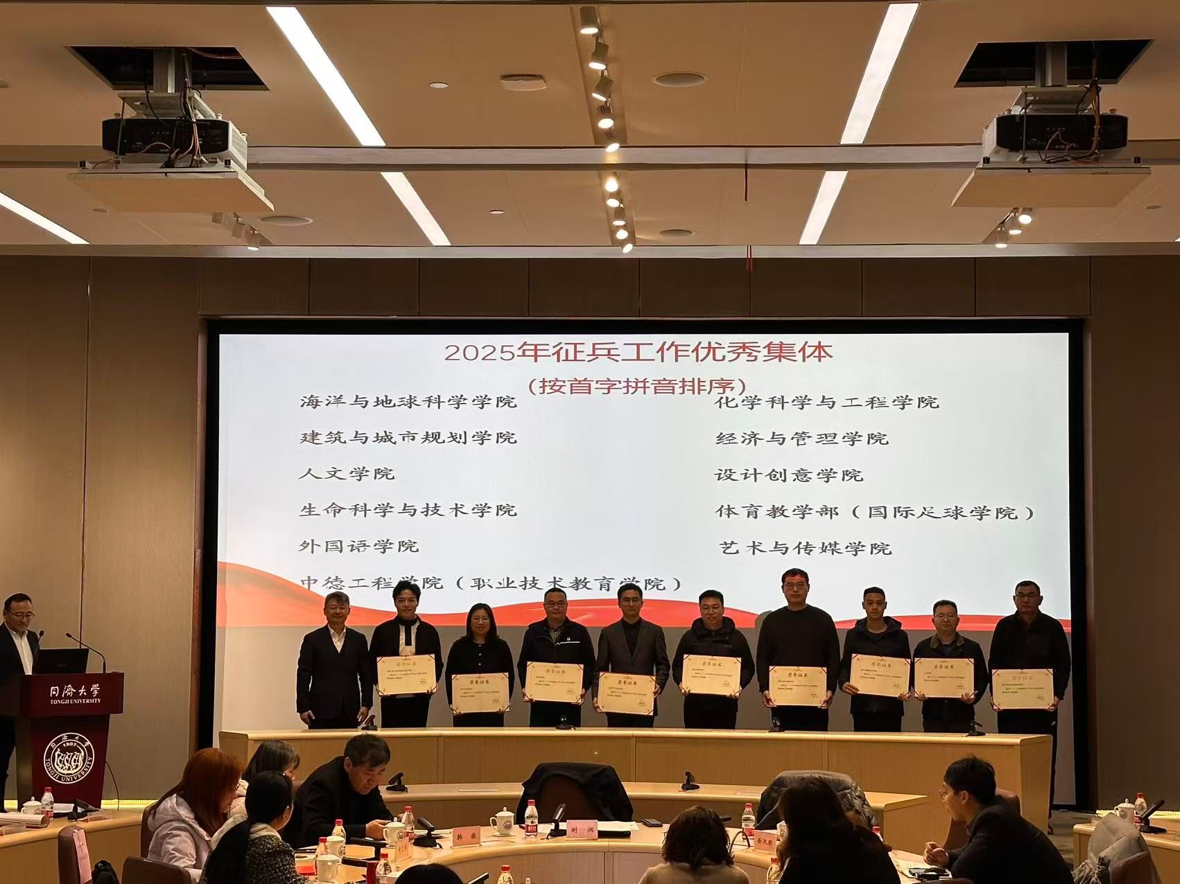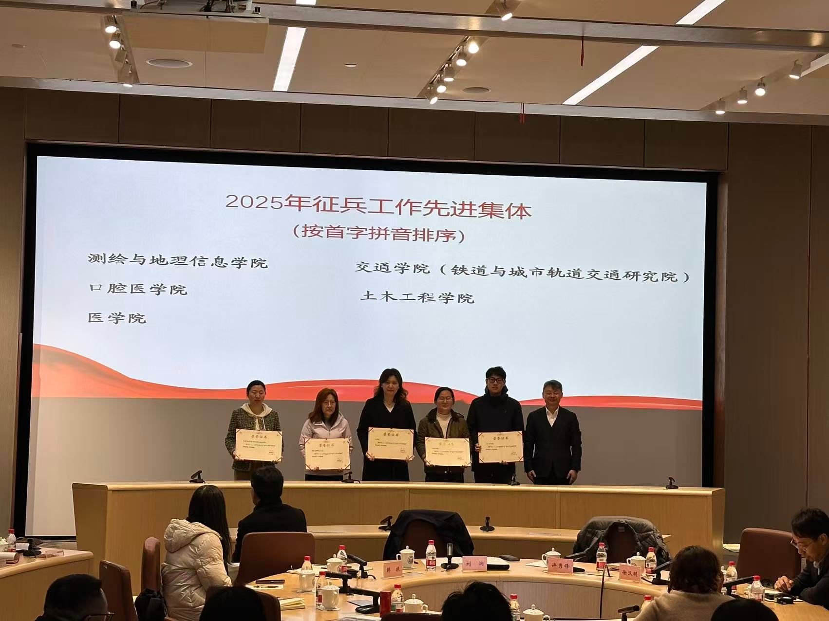 武装部部长许秀锋宣读了《关于表彰同济大学2025年度征兵工作先进集体、优秀集体及先进个人的决定》。校党委副书记刘润向获奖集体和个人颁奖。先进集体代表土木工程学院和先进个人代表医学院吉莉分别分享了征兵工作经验。